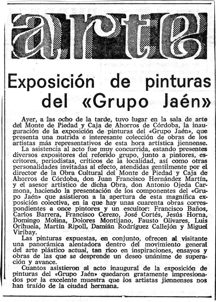 Exposición de pinturas del «Grupo Jaén»