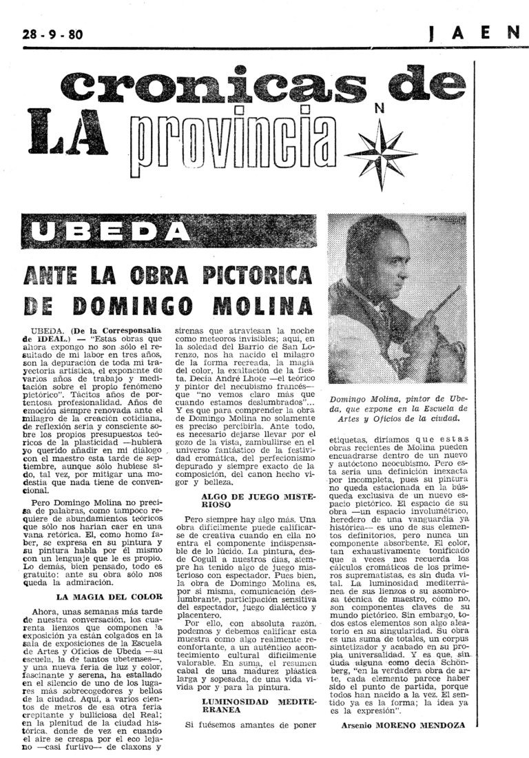 11 septiembre, 1980 1980-1989 Domingo Molina, o la soledad del artista en el alumbramiento de su obra
