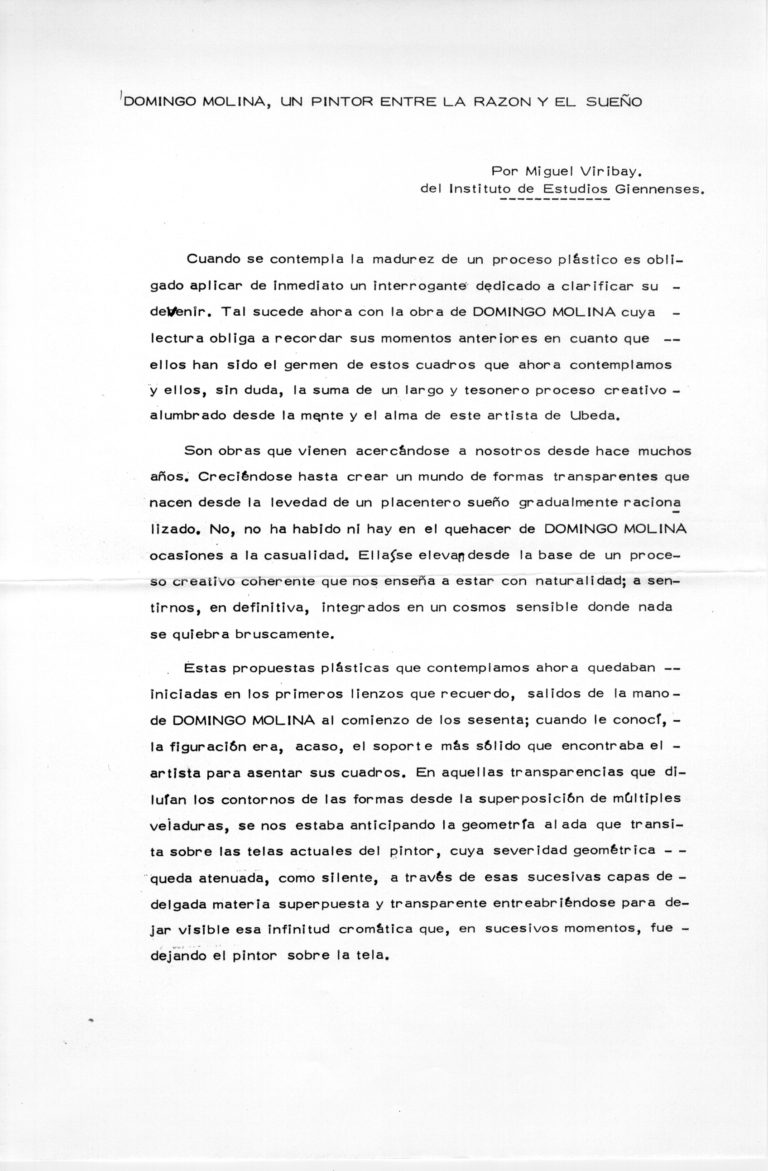 11 septiembre, 1984 1980-1989 Domingo Molina, un pintor entre la razón y el sueño. Original para publicación