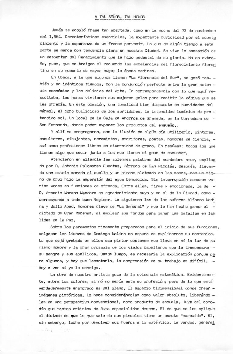 A tal señor, tal honor. Original para publicación
