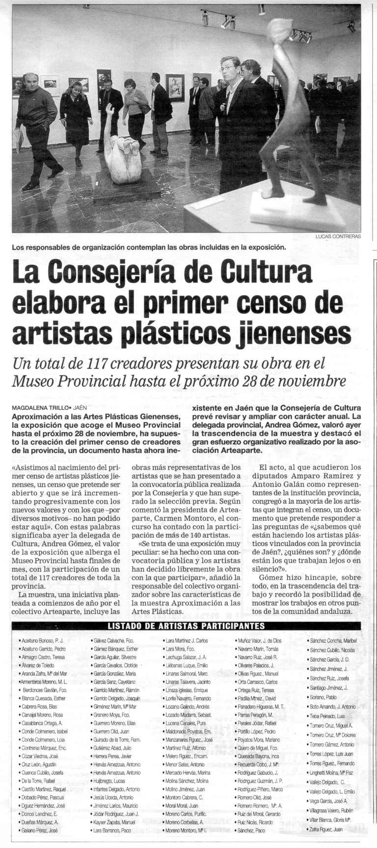 3 noviembre, 2000 2000-2009 La Consejería de Cultura elabora el primer censo de artistas plásticos jienenses