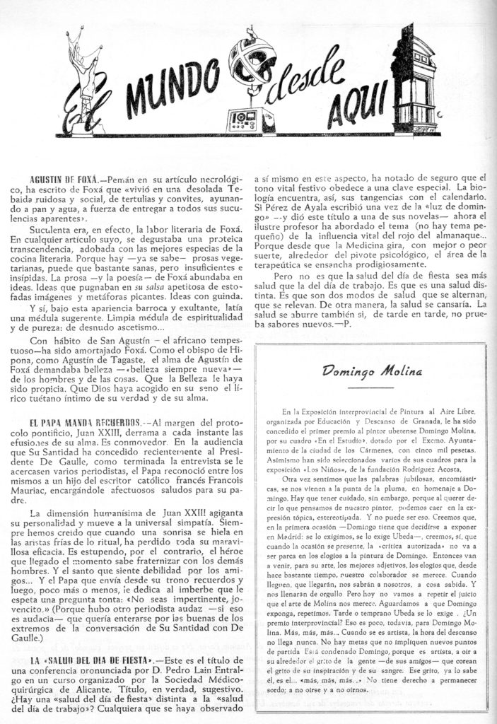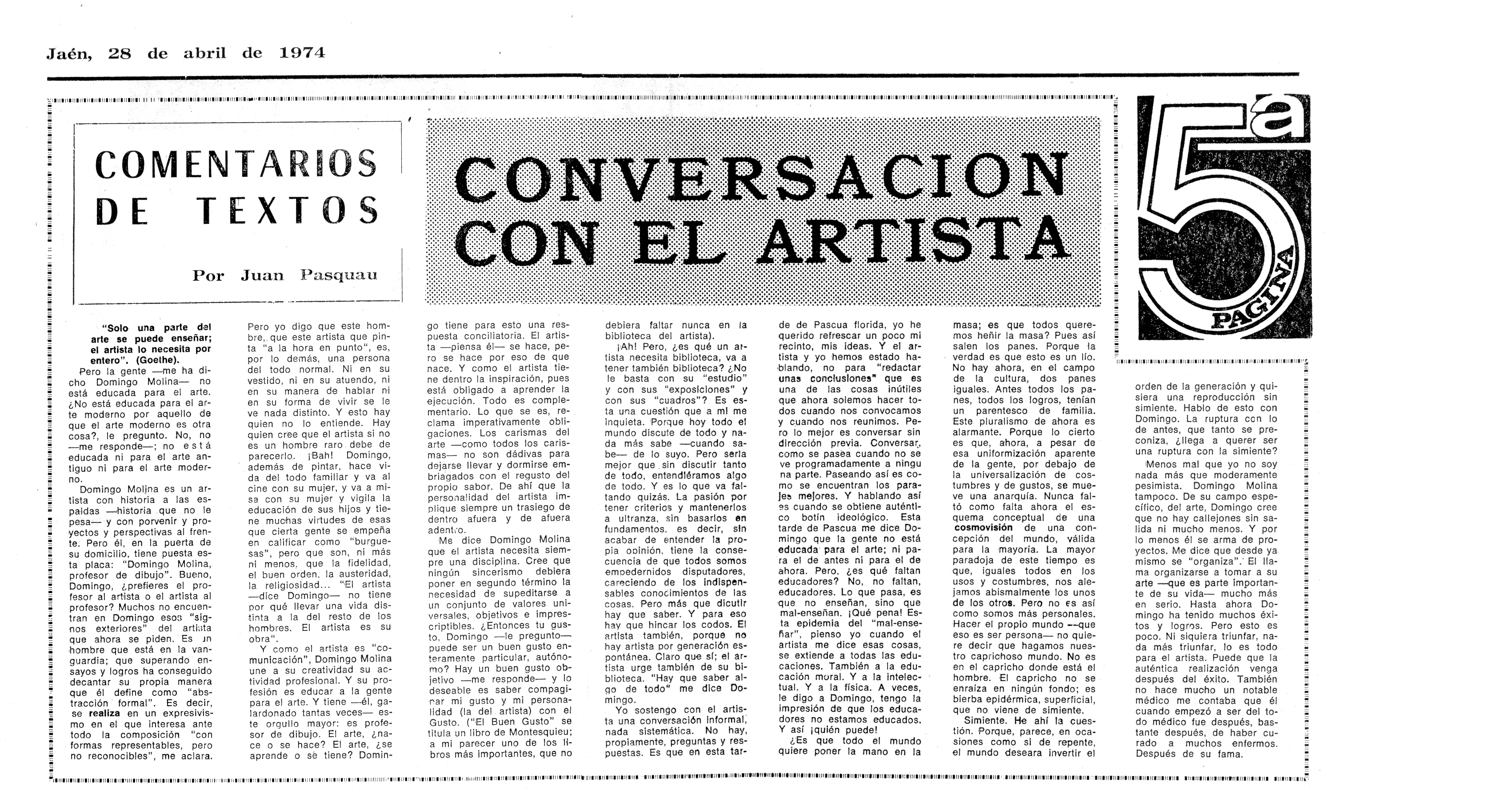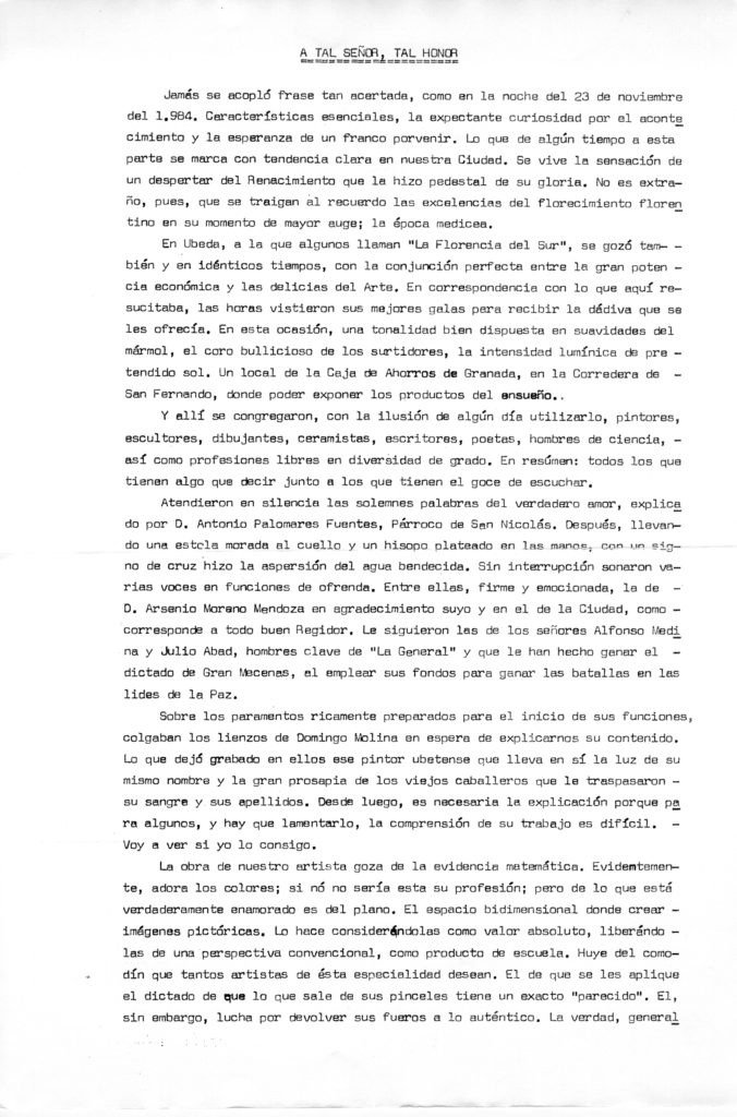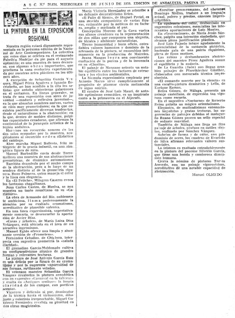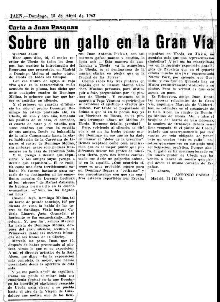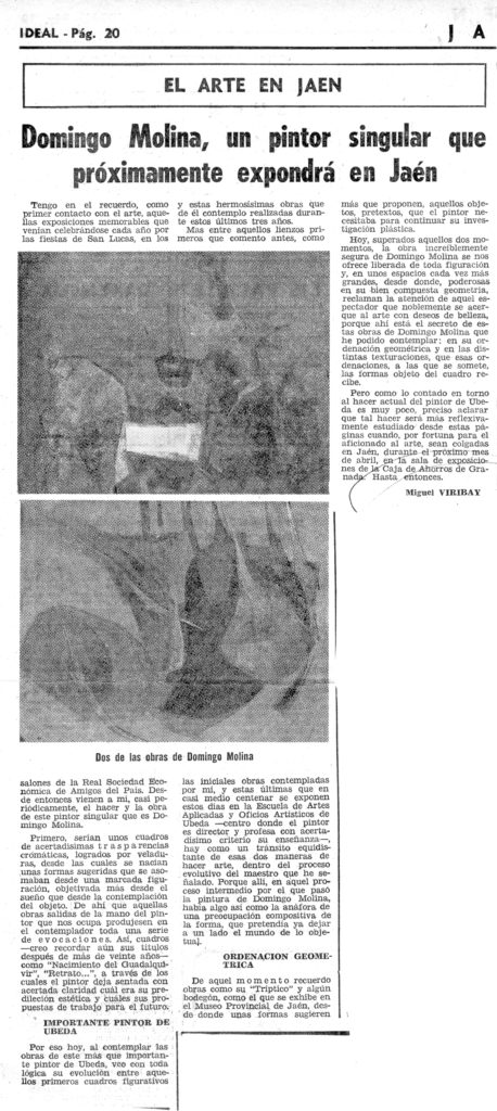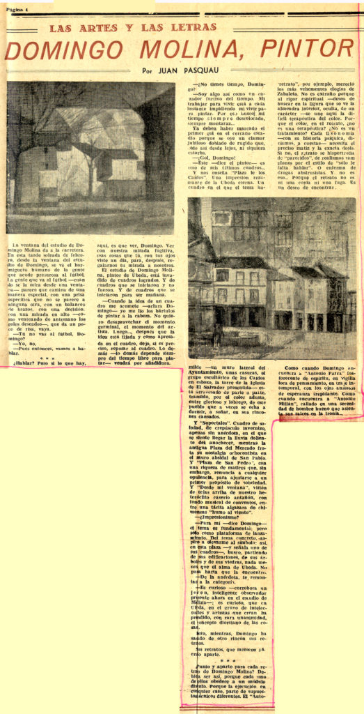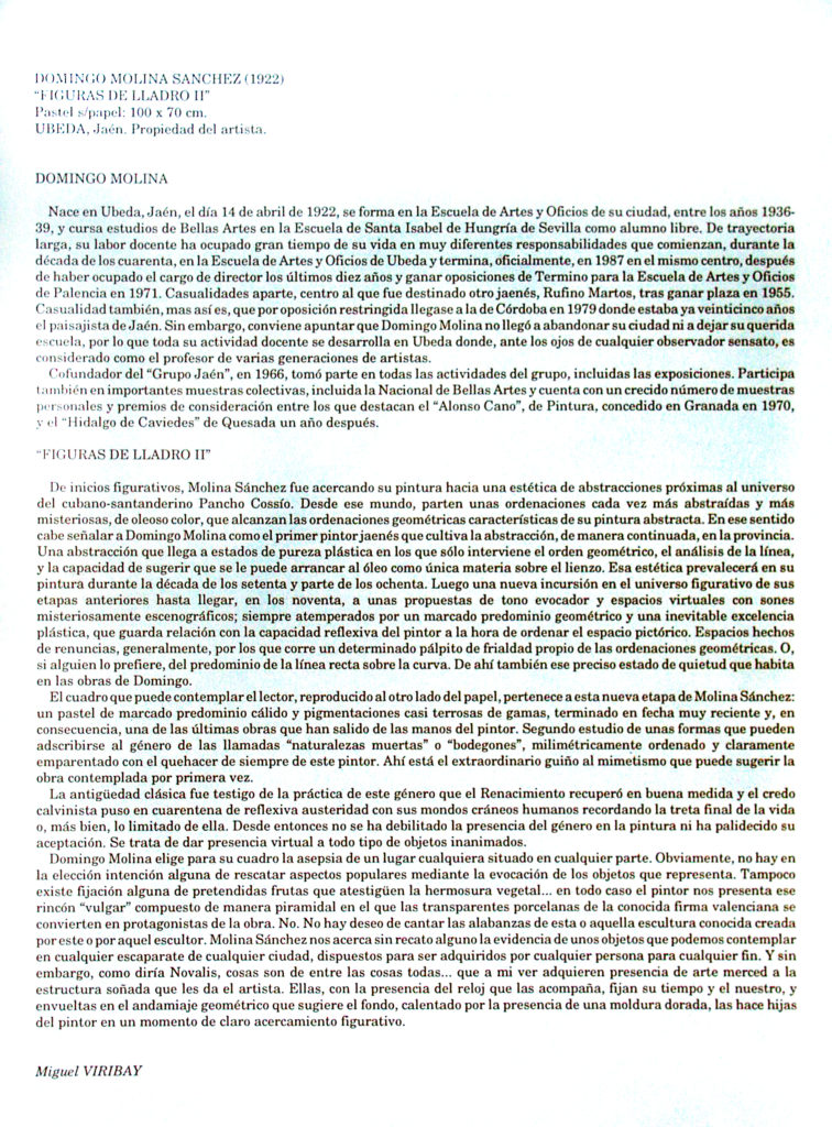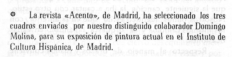 La pintura de Domingo Molina. Radio Nacional de España (transcripción)