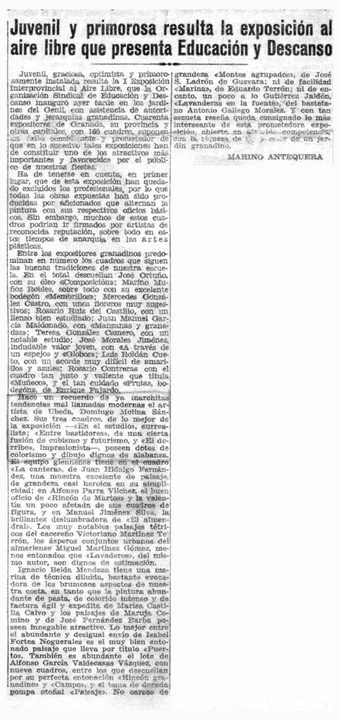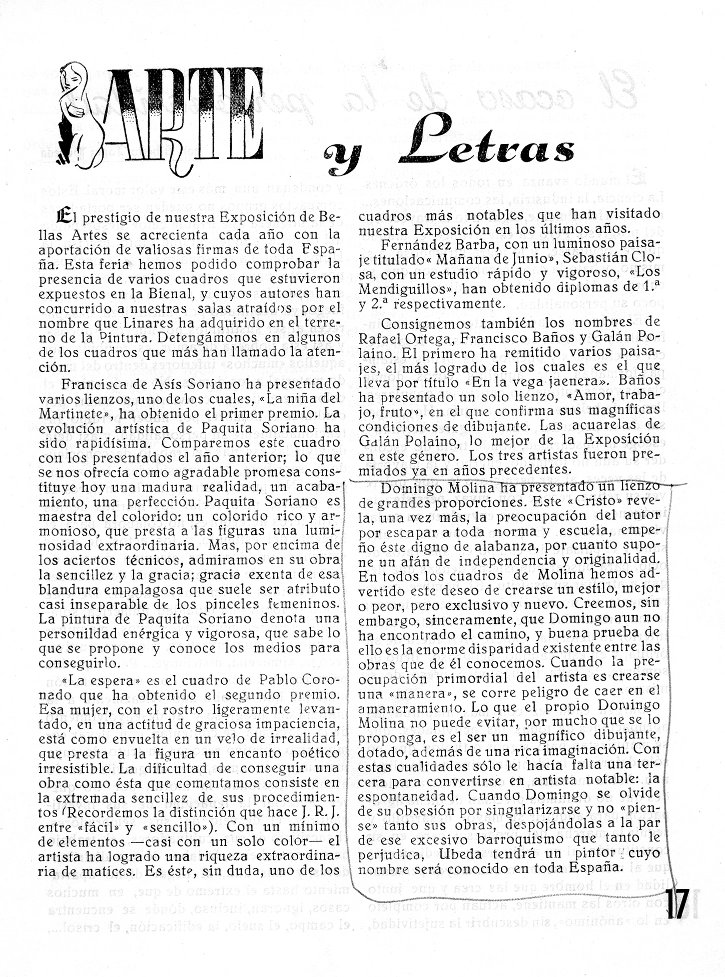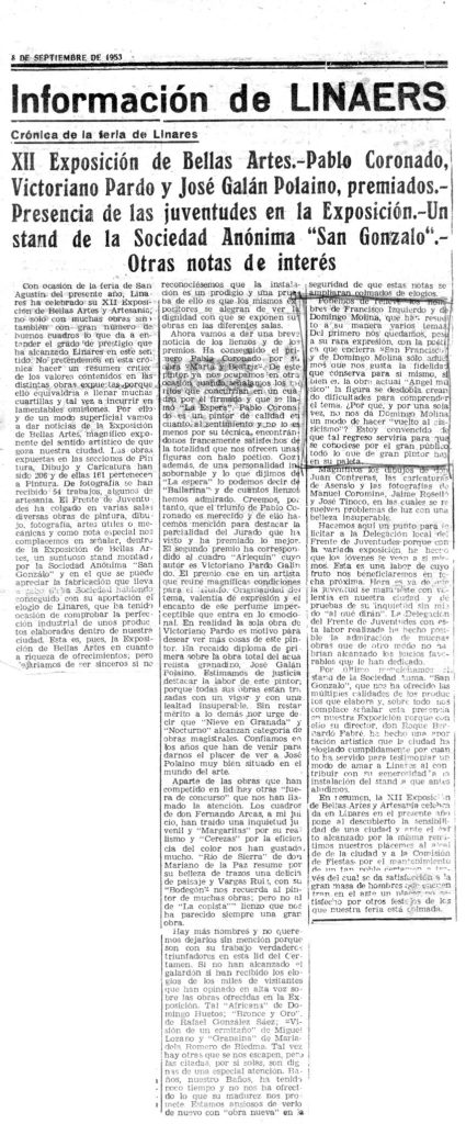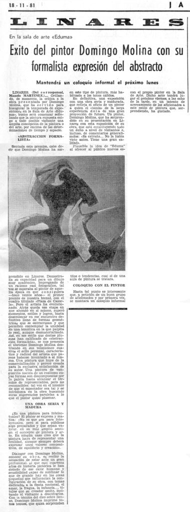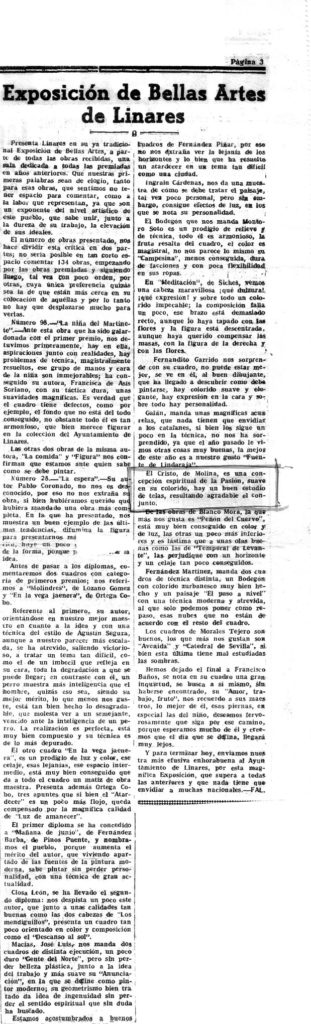 Un pintor -Domingo Molina- opina sobre la exposición de Bellas Artes de Linares