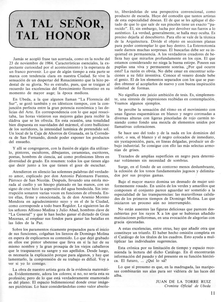 Ante la obra pictórica de Domingo Molina