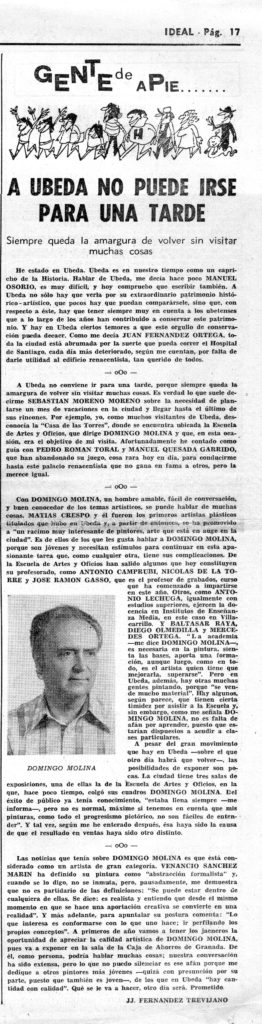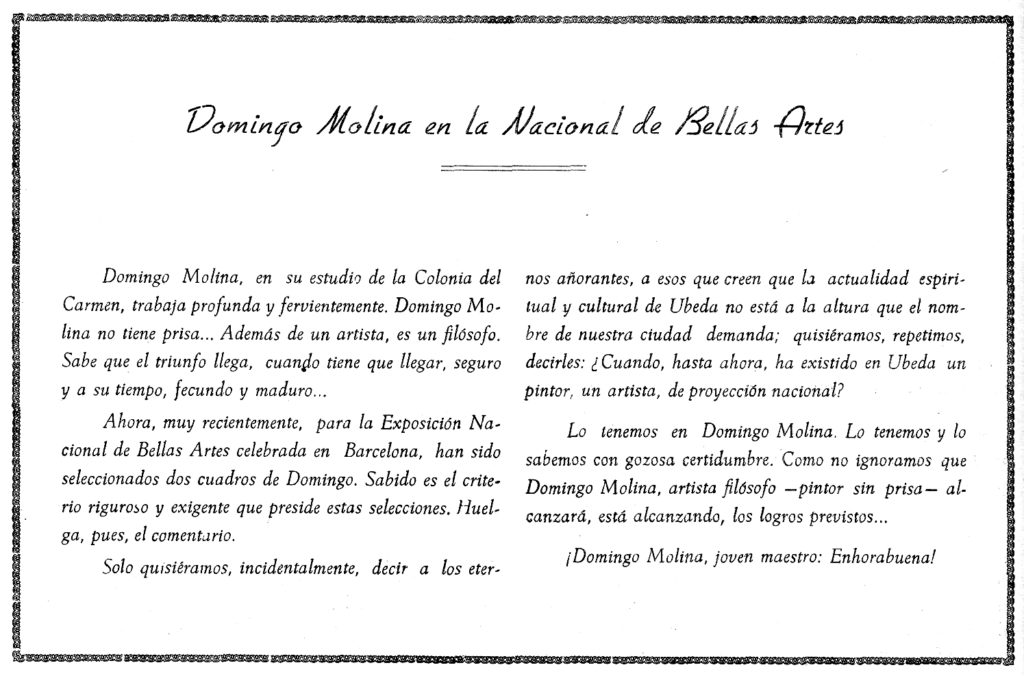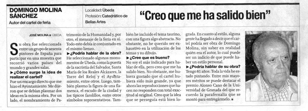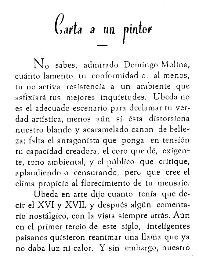 Domingo Molina Sánchez, la sinceridad del arte ubetense