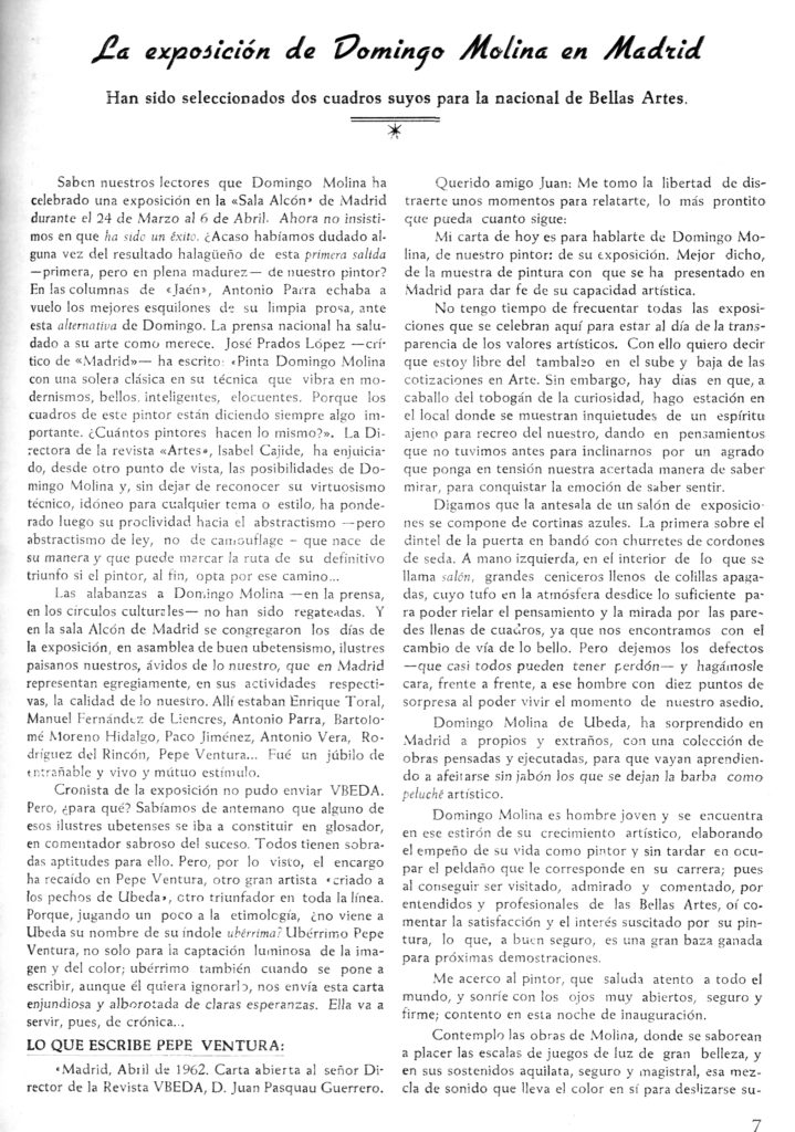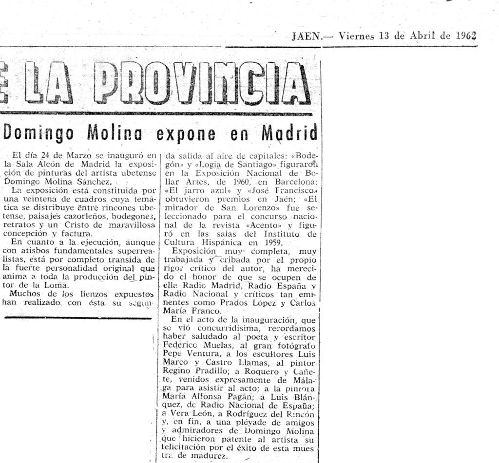 Exposición antológica del excelente pintor ubetense Domingo Molina