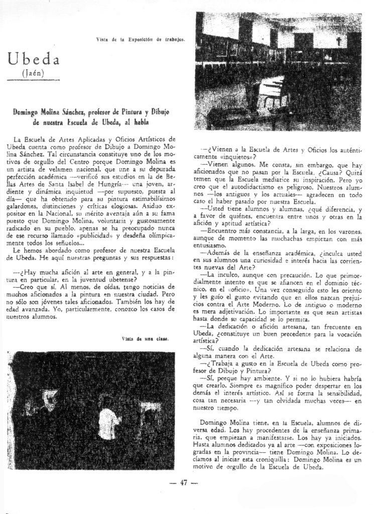 Domingo Molina Sánchez, profesor de pintura y dibujo de nuestra escuela, al habla