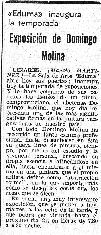 Eduma inaugura la temporada. Exposición de Domingo Molina