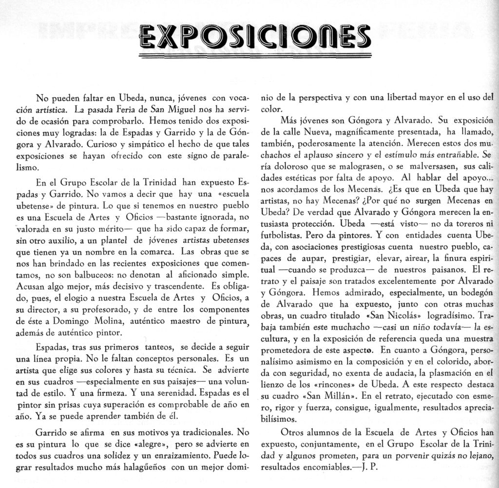 Exposición del ubetense Domingo Molina