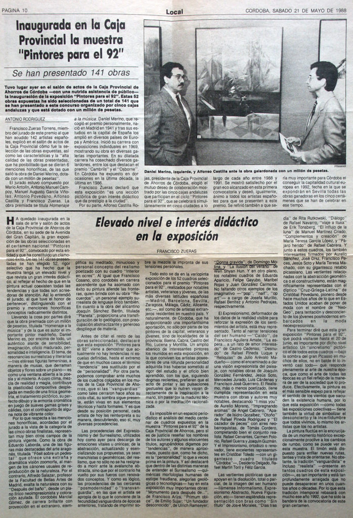 Inaugurada en la Caja Provincial la muestra «Pintores para el 92». Elevado nivel e interés didáctico en la exposición.