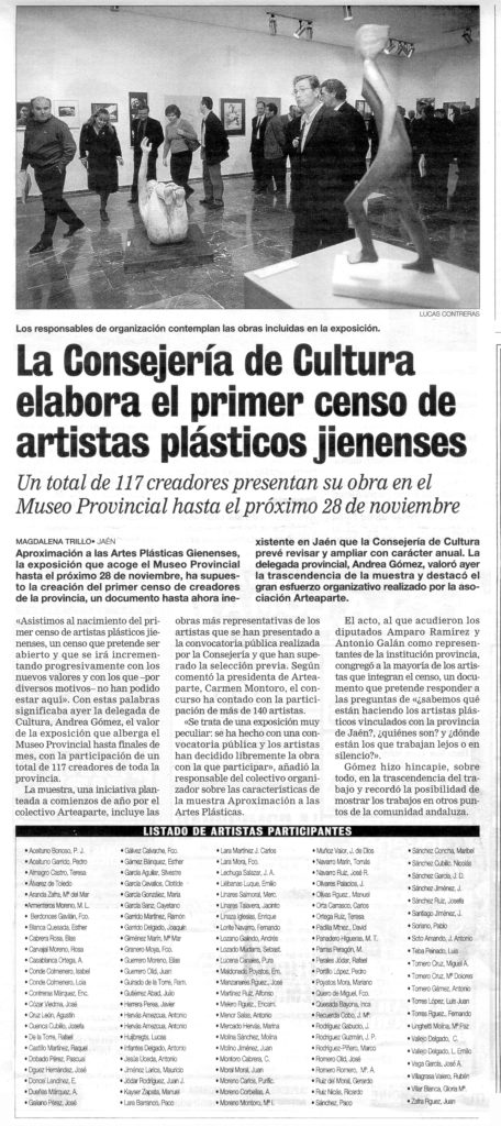 La Consejería de Cultura elabora el primer censo de artistas plásticos jienenses