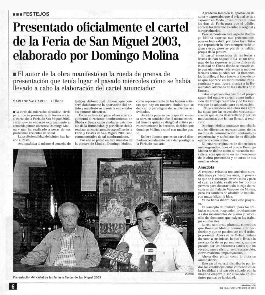Presentado oficialmente el cartel de la feria de San Miguel 2003, elaborado por Domingo Molina