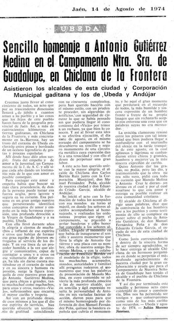 Sencillo homenaje a Antonio Gutiérrez Medina en el campamento Ntra. Sra. de Guadalupe, en Chiclana de la Frontera