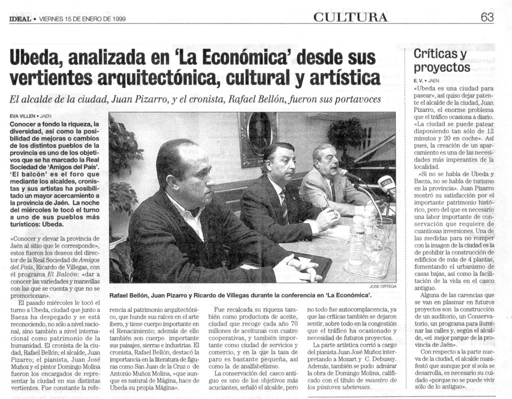 Úbeda, analizada en «La Económica» desde sus vertientes arquitectónica, cultural y artística