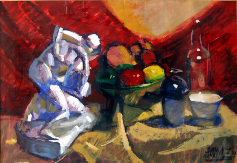 FIGURA DE ESCAYOLA Y FRUTAS