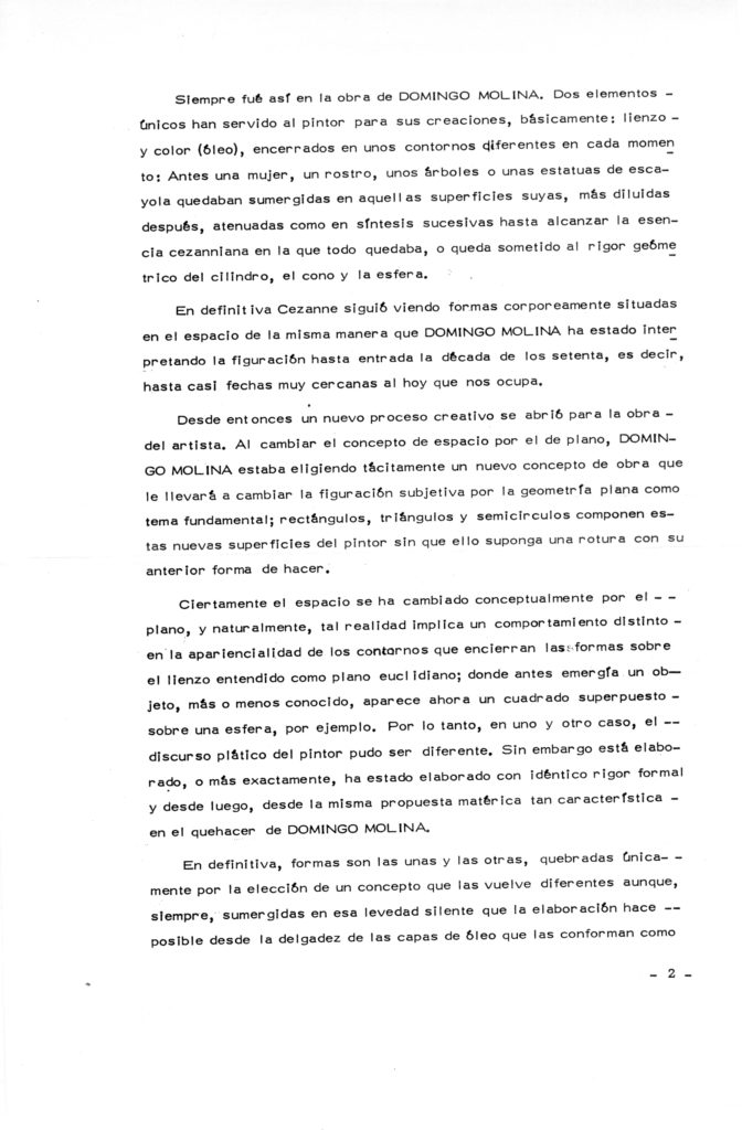 Domingo Molina, un pintor entre la razón y el sueño. Original para publicación